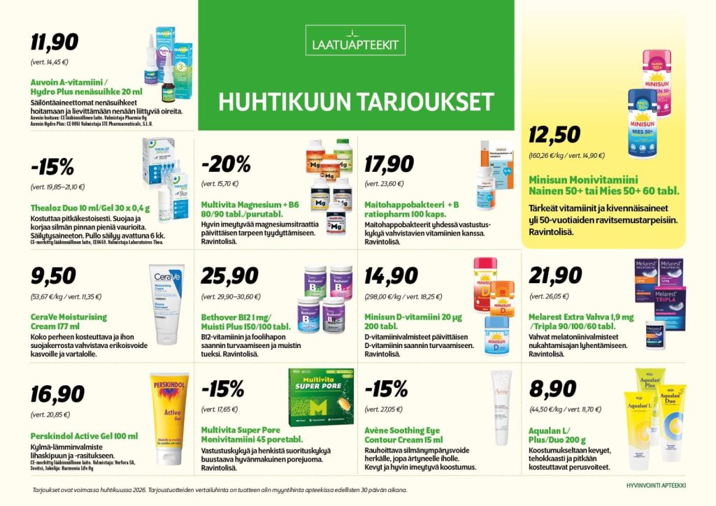 Torstaina 9.4.2026 suljemme klo 18:00 apteekkarin vaihdoksen vuoksi.